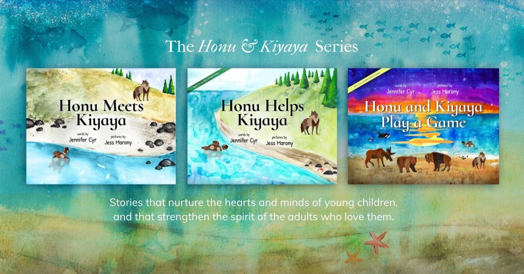 Honu Meets Kiyaya: Honu Meets Kiyaya is an uplifting story about an unlikely friendship between a sea turtle and wolf. The characters learn about each other, and in doing so, forge a special bond. With lush illustrations and wonderful characters, Honu and Kiyaya is a beautiful story that young children will love to hear, and their caregivers will appreciate the thoughtful conversations that will be sparked by the timeless story.