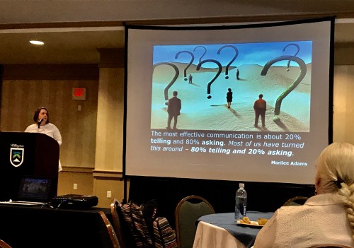 So I’m attending the VAEYC conference once again, and our keynote was about the power of questions. Dr. Lindsey Godwin from the Appreciative Inquiry Center, an internationally renowned speaker and author, shared her work and perspective on questions.